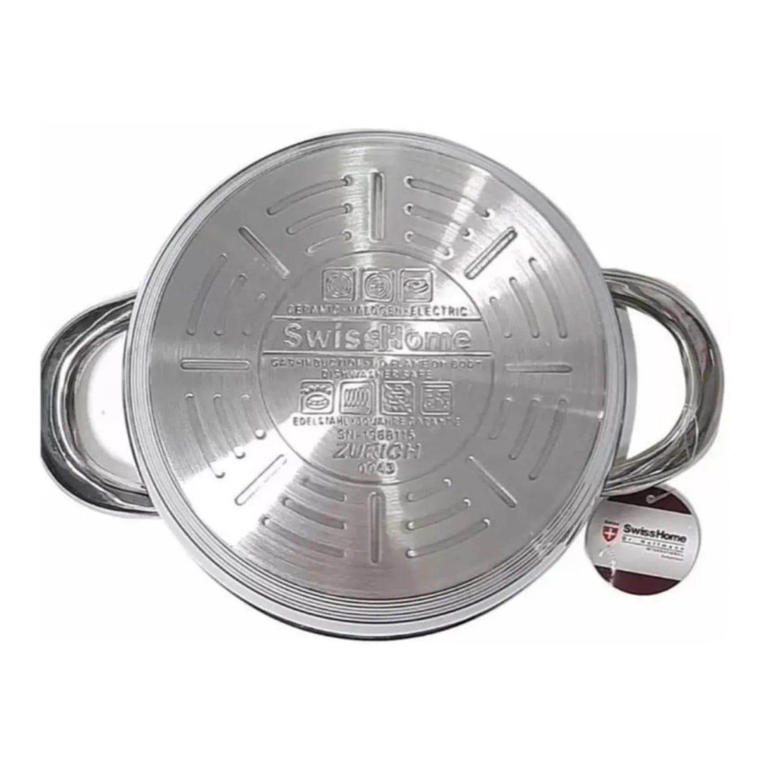 Batería de Cocina de Acero Quirurgico 13 Piezas SwissHome con Tapas y Tetera Ollas y Sartenes Premium