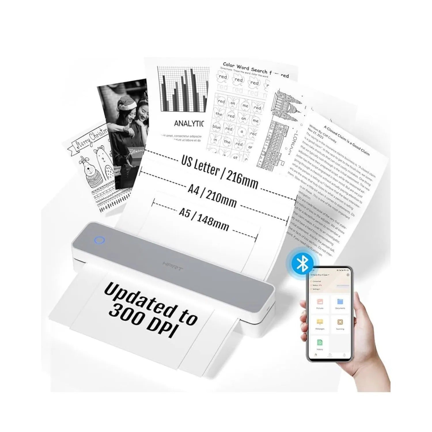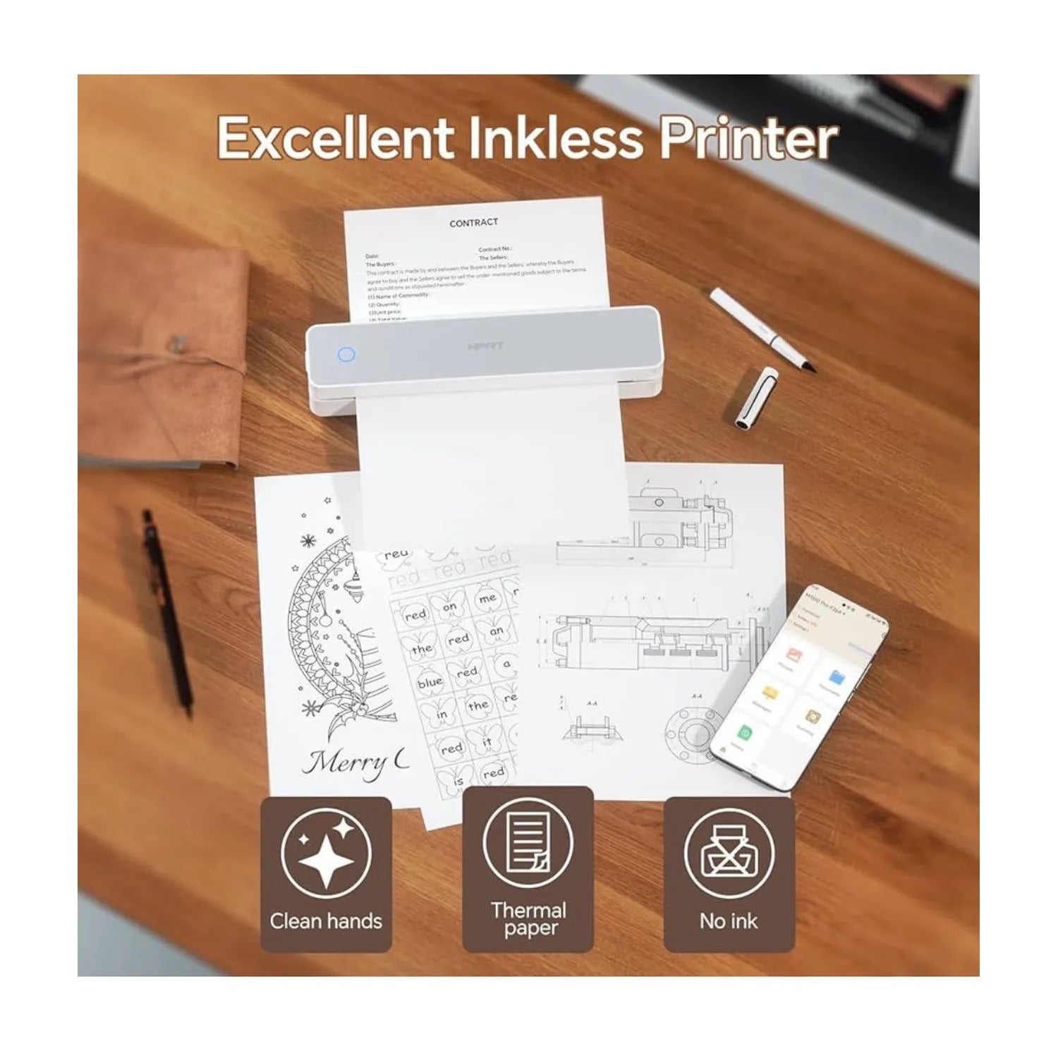 - Impresión sin tinta y eficaz: tecnología de impresión mejorada de 300 ppp y papel térmico especializado para una excelente calidad de impresión, ya no hay necesidad de reemplazar con frecuencia tinta, tóner o cintas