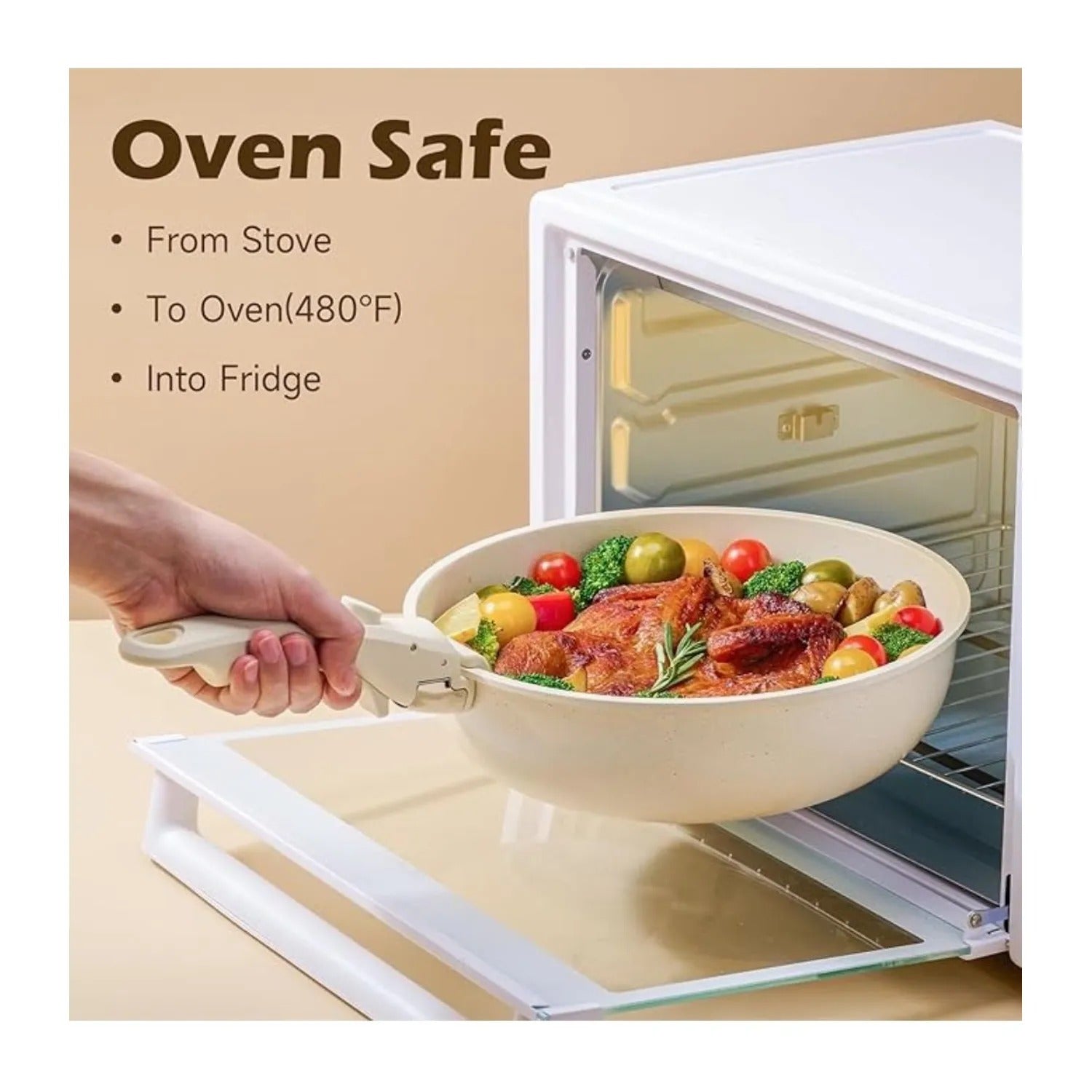 - Mango extraíble único: el mango extraíble hace que sea fácil llevar la sartén de la estufa al horno a la mesa del comedor, por lo que es fácil para una persona cocinar