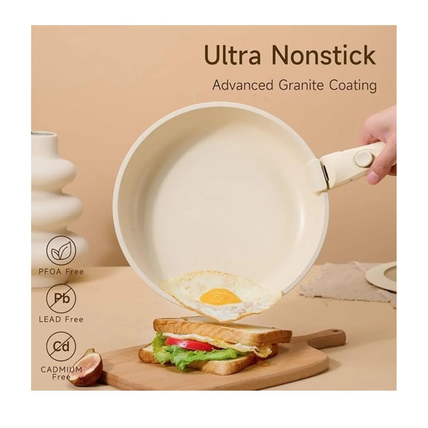 - Fácil de limpiar: el juego de sartenes con mango extraíble JEETEE está hecho de revestimiento antiadherente de granito, que se puede cocinar rápidamente con solo una pequeña cantidad de aceite, y solo necesita limpiarse con agua y trapos después de su uso, más respetuoso con el medio ambiente y saludable